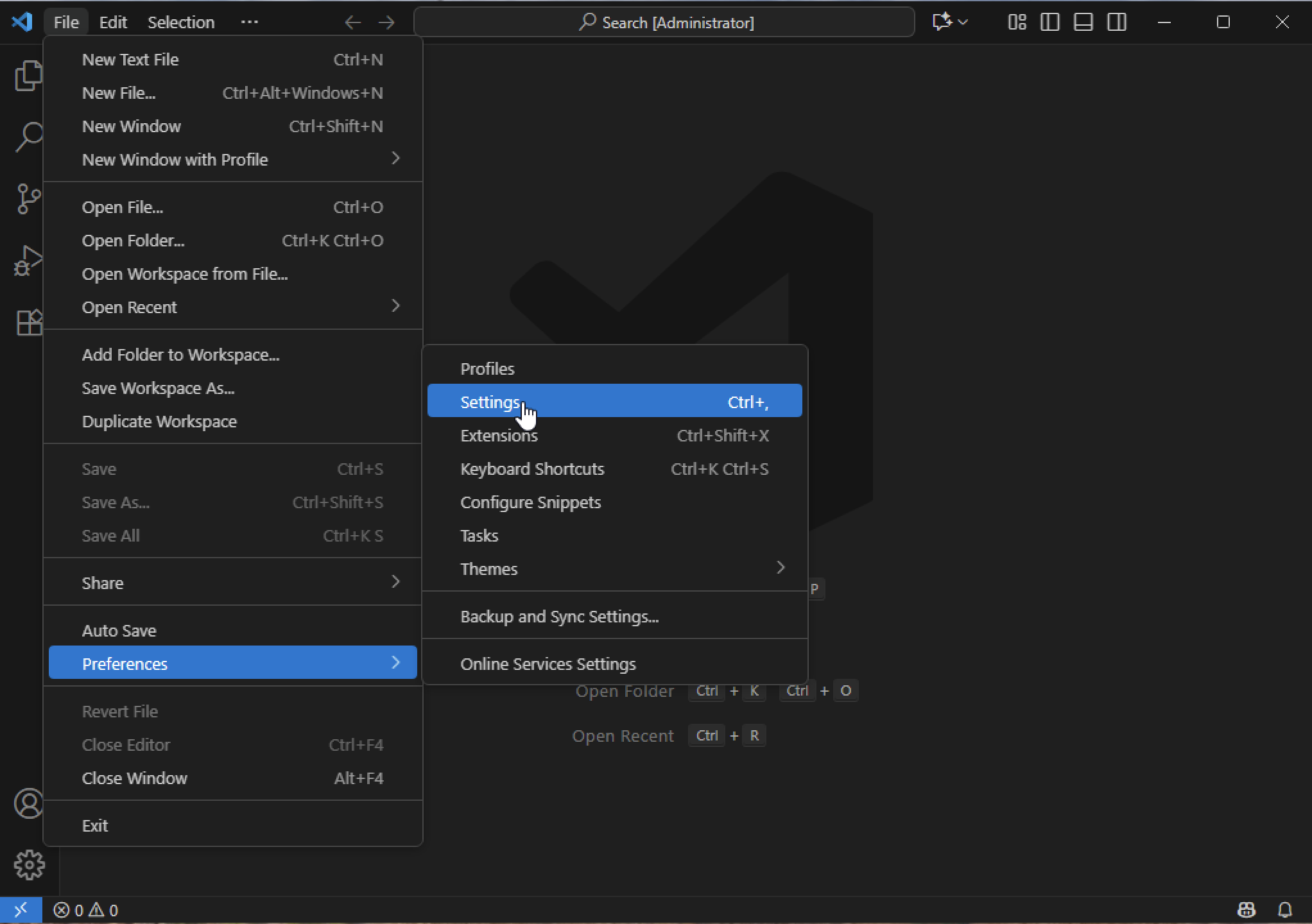 Open VS Code settings by going to File